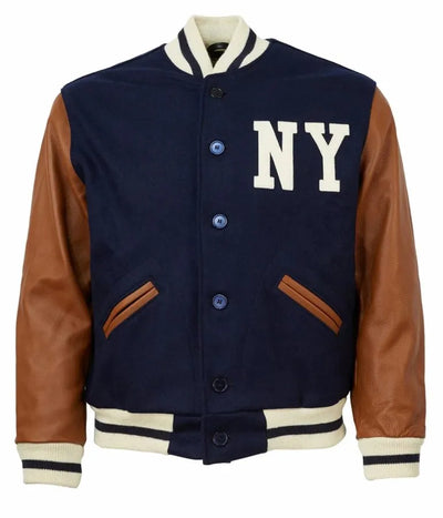 1940 New York Yankees Varsity Navy Blue Wool and Brown Leather Men's Jacket