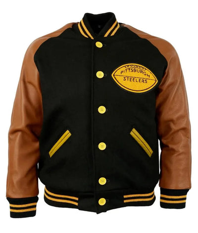 1955 Pittsburgh Steelers Black Wool & Brown Genuine Leather Sleeves Men's Varsity Letterman Jacket