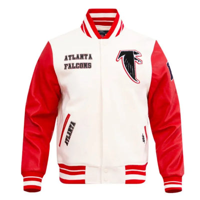 Atlanta Falcons Varsity Off White Wool & Red Genuine Leather Sleeves Men's Jacket