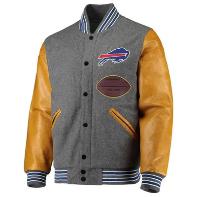 Buffalo Bills Gray Wool and Gold Leather Sleeves Full-Snap Varsity Men's Jacket