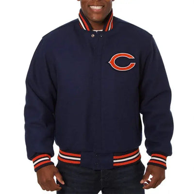 Chicago Bears Navy Blue All Wool Men's Varsity Jacket