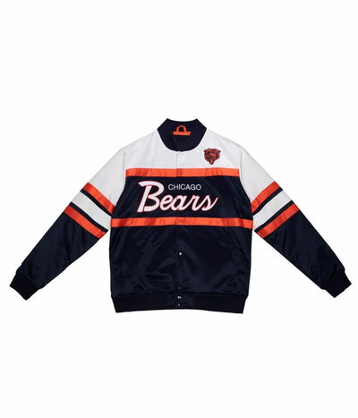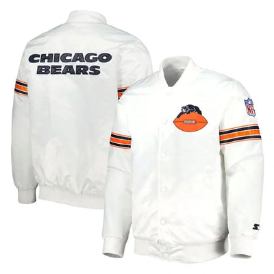 Chicago Bears Throwback D-Line Full-Snap Varsity White Satin Men's Bomber Jacket