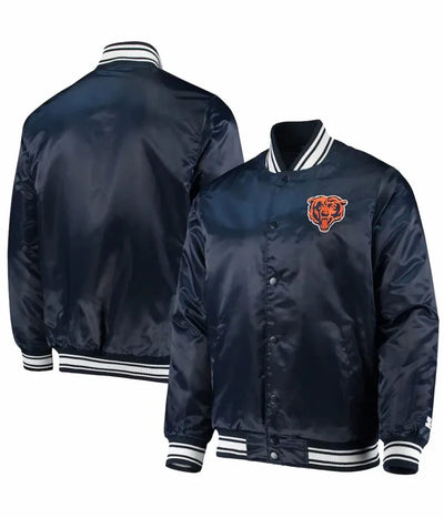 Chicago Bears Midweight Full-Snap Varsity Navy Blue Satin Men's Bomber Jacket