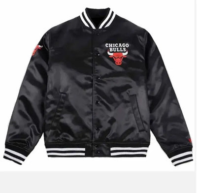 Chicago Bulls Full-Snap Varsity Black Satin Men's Bomber Jacket