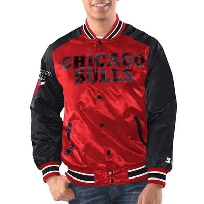 Chicago Bulls Fast Break Full-Snap Varsity Red and Black Satin Men's Bomber Jacket