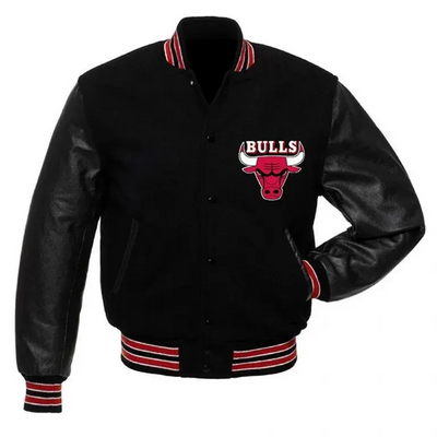 Chicago Bulls College Black Wool & Genuine Leather Sleeves Men's Varsity Letterman Jacket