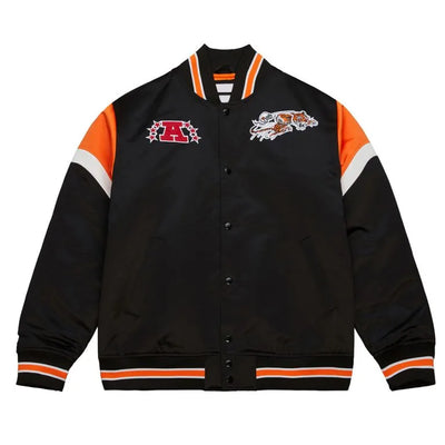 Cincinnati Bengals Full-Snap Varsity Black and Orange Satin Men's Bomber Jacket