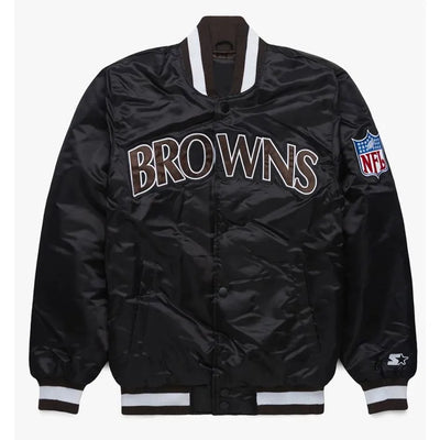 Cleveland Browns Full-Snap Varsity Black Satin Men's Bomber Jacket