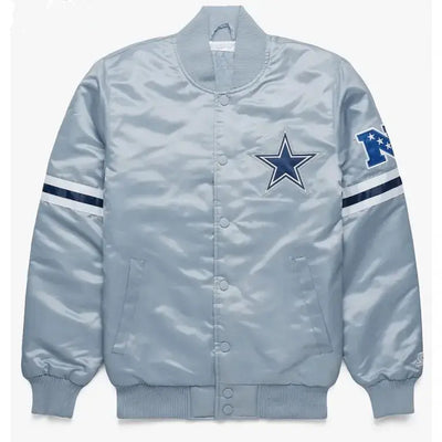 Dallas Cowboys Full-Snap Varsity Gray Satin Men's Bomber Jacket