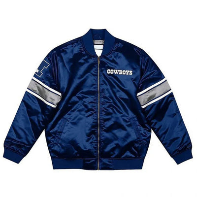 Dallas Cowboys Heavyweight Full-Snap Varsity Navy Blue Satin Men's Bomber Jacket