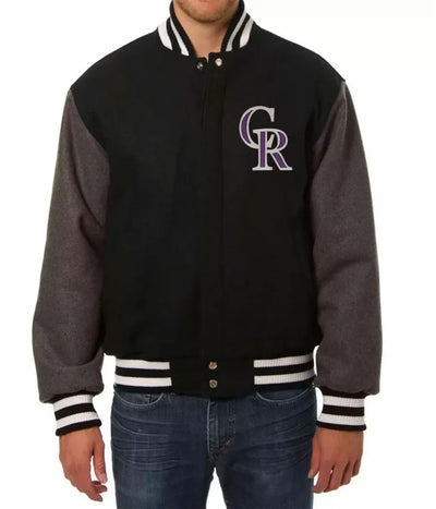 Colorado Rockies Two Tone Black and Gray Wool Varsity Men's Jacket