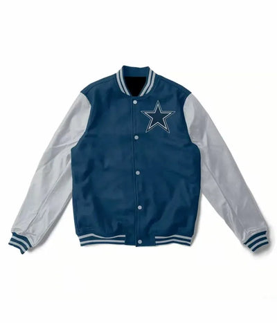Dallas Cowboys Blue Wool & Gray Genuine Leather Sleeves Men's Varsity Jacket
