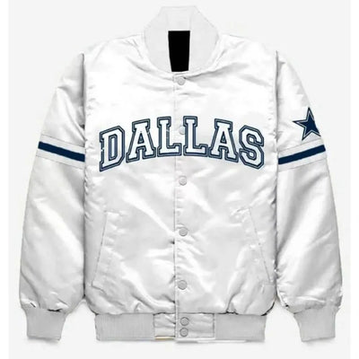 Dallas Cowboys Full-Snap Varsity Striped White Satin Men's Bomber Jacket