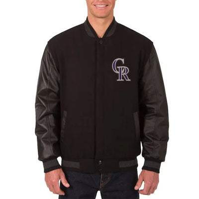 Colorado Rockies Varsity Black Wool & Leather Sleeves Men's Jacket