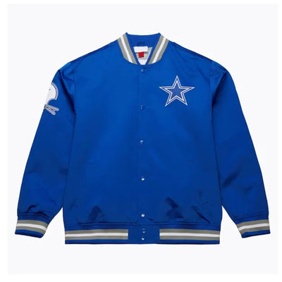 Dallas Cowboys Double Down Full-Snap Varsity Royal Blue Satin Men's Bomber Jacket