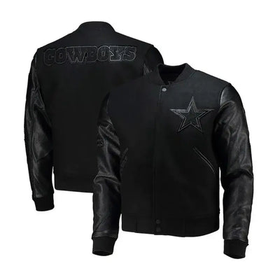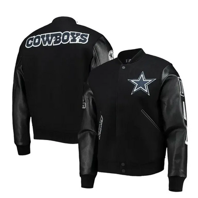 Dallas Cowboys Black Wool & Genuine Leather Sleeves Men's Varsity Jacket