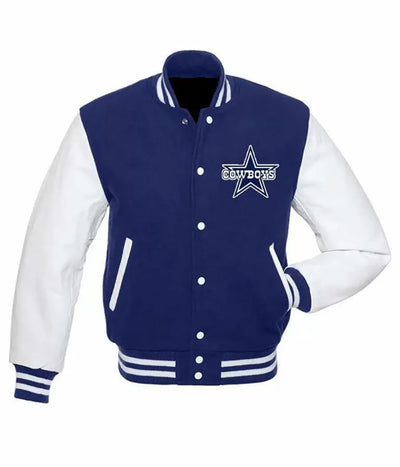 Dallas Cowboys Royal Blue Wool & White Genuine Leather Sleeves Men's Varsity Jacket