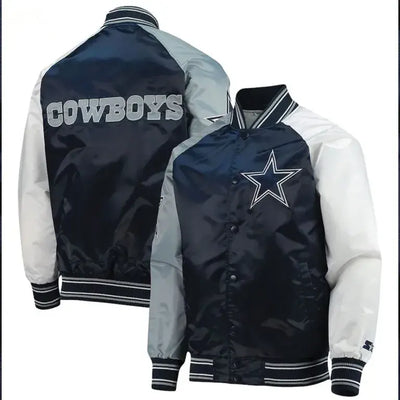 Dallas Cowboys The Leader Full-Snap Varsity Navy Blue & Gray Satin Men's Bomber Jacket