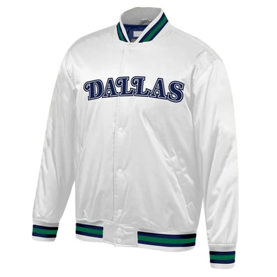 Dallas Mavericks Hardwood Classic Lightweight Full-Snap Varsity White Satin Men's Bomber Jacket