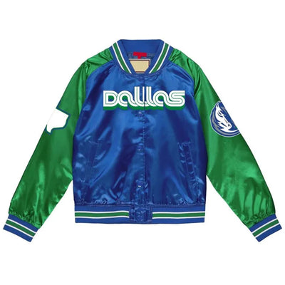 Dallas Mavericks City Edition Lightweight Full-Snap Varsity Blue/Green Satin Men's Bomber Jacket