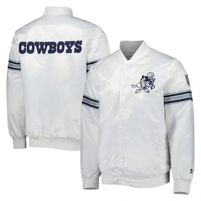 Dallas Cowboys Scout Full-Snap Varsity White Satin Men's Bomber Jacket