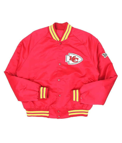 1990’s Kansas City Chiefs Vintage Full-Snap Varsity Red Satin Men's Bomber Jacket
