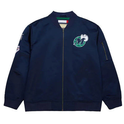 Dallas Mavericks Hardwood Classics Full-Snap Varsity Navy Blue Satin Men's Bomber Jacket