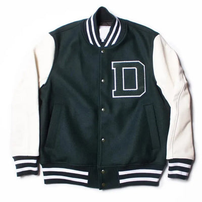 Dartmouth Green Wool & White Genuine Leather Sleeves Men's Letterman Varsity Jacket