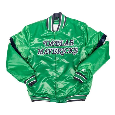 Dallas Mavericks Home Game Hardwood Full-Snap Varsity Green Satin Men's Bomber Jacket