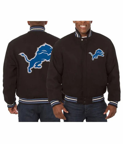 Detroit Lions Embroidered Black All Wool Men's Varsity Jacket