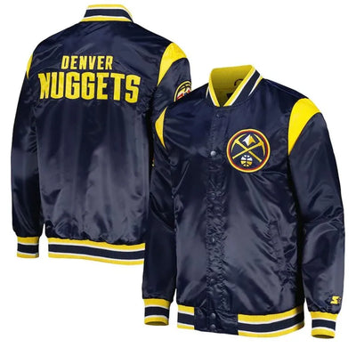 Denver Nuggets Full-Snap Varsity Blue and Yellow Satin Men's Bomber Jacket