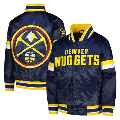 Denver Nuggets Youth Home Game Full-Snap Varsity Navy Blue Satin Men's Bomber Jacket