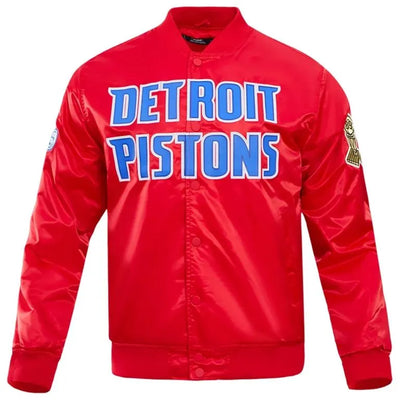 Detroit Pistons Big Logo Full-Snap Varsity Red Satin Men's Bomber Jacket