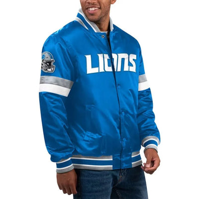 Detroit Lions Home Game Full-Snap Varsity Blue Satin Men's Bomber Jacket