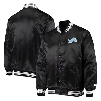 Detroit Lions Locker Room Full-Snap Varsity Black Satin Men's Bomber Jacket