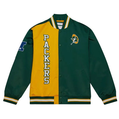Green Bay Packers Leader Full-Snap Varsity Yellow and Green Satin Men's Bomber Jacket