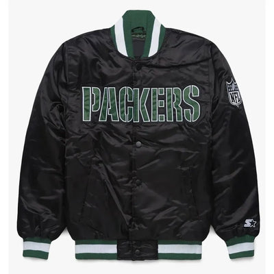 Green Bay Packers Full-Snap Varsity Black Satin Men's Bomber Jacket