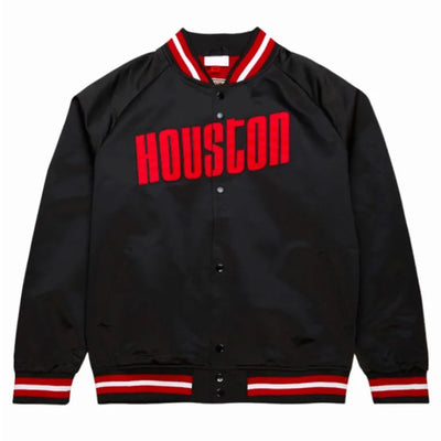 Houston Rockets Lightweight Full-Snap Varsity Black Satin Men's Bomber Jacket