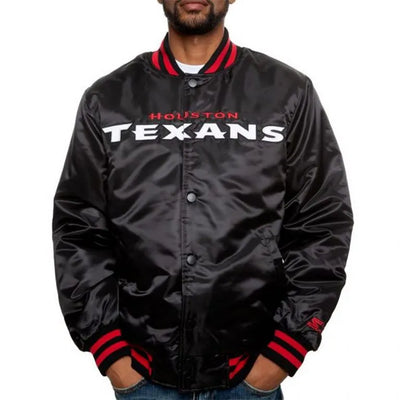 Houston Texan Full-Snap Varsity Black Satin Men's Bomber Jacket