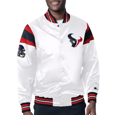 Houston Texan Scout Full-Snap Varsity White Satin Men's Bomber Jacket