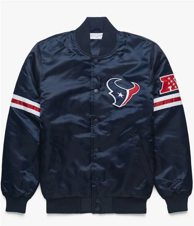 Houston Texan Full-Snap Varsity Navy Blue Satin Men's Bomber Jacket