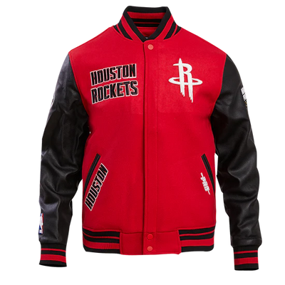 Houston Rockets Retro Classic Rib Varsity Red Wool & Black Genuine Leather Sleeves Men's Bomber Jacket