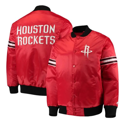 Houston Rockets The Enforcer Full-Snap Varsity Red and Black Satin Men's Bomber Jacket