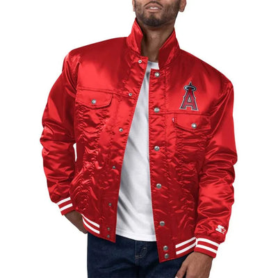 Los Angeles Angels Trucker Silver Tab Full-Snap Red Satin Men's Jacket
