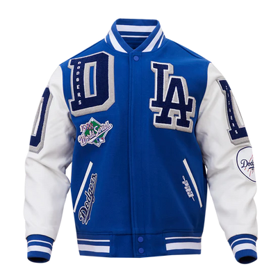 LA Dodgers Mash Up Varsity Blue Wool & White Leather Sleeves Men's Jacket