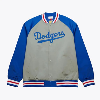 LA Dodgers Vintage Logo Double Clutch Lightweight Gray Satin Men's Jacket