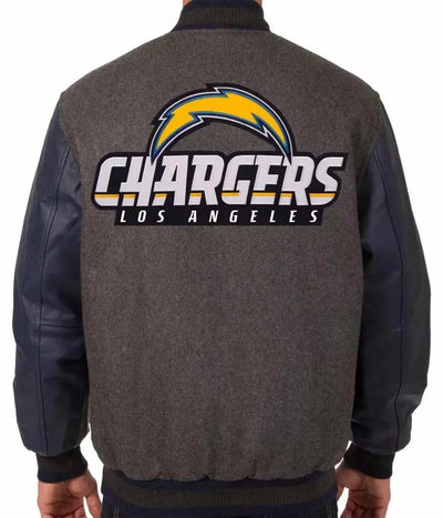 Los Angeles Chargers Charcoal Wool and Navy Blue Genuine Leather Sleeves Men's Varsity Letterman Jacket