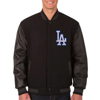 Los Angeles Dodgers Letterman Black Wool & Leather Full-Zip Men's Jacket