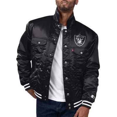 Los Angeles Raiders The Reliever Full-Snap Varsity Black Satin Men's Bomber Jacket