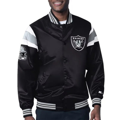 Los Angeles Raiders Pro Full-Snap Varsity Black Satin Men's Bomber Jacket